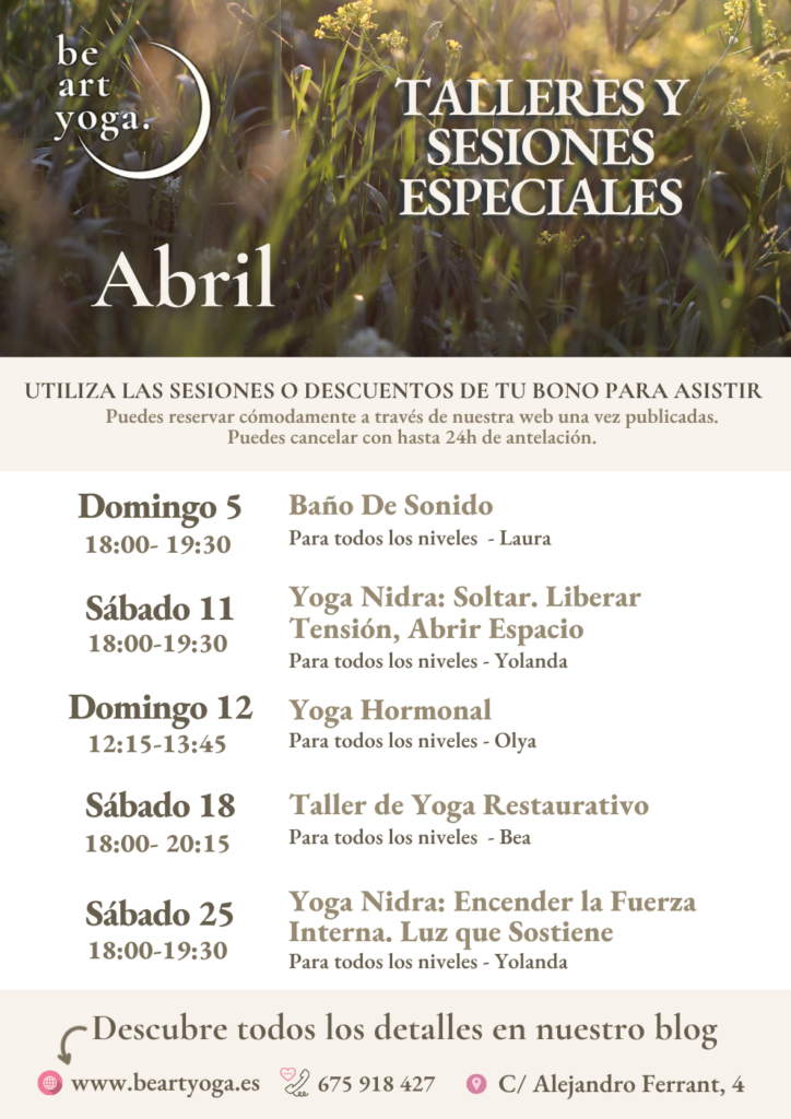 En Marzo, te invitamos a participar en nuestras sesiones especiales y talleres de yoga en Be Art Yoga, nuestro estudio en Arganzuela. Estas clases están diseñadas para todos los niveles, desde principiantes hasta practicantes avanzados. Explora una variedad de técnicas y estilos que te ayudarán a profundizar en tu práctica. Mejora tu bienestar y encuentra el equilibrio entre cuerpo y mente en un entorno acogedor y relajante.