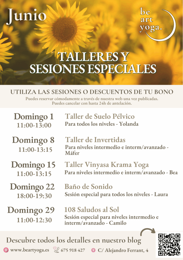 En junio, te invitamos a participar en nuestras sesiones especiales y talleres de yoga en Be Art Yoga, nuestro estudio en Arganzuela. Estas clases están diseñadas para todos los niveles, desde principiantes hasta practicantes avanzados. Explora una variedad de técnicas y estilos que te ayudarán a profundizar en tu práctica. Mejora tu bienestar y encuentra el equilibrio entre cuerpo y mente en un entorno acogedor y relajante.